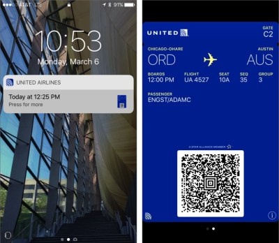 But on my nearly recent trip, to Austin for the ASMC Summit for independent Apple resellers, everything merely worked. The United app knew near my itinerary one time I was logged in, and the Delta app figured it out once I entered the ticket number. Both notified me when I could cheque in, and made it easy to do that and add together my boarding passes to Wallet. iOS 10 and Wallet were smart plenty to brandish a constant notification on the lock screen during the fourth dimension I needed it, a unmarried swipe brought up the boarding pass, and it stayed on screen while I waited in line, regardless of Raise to Wake.